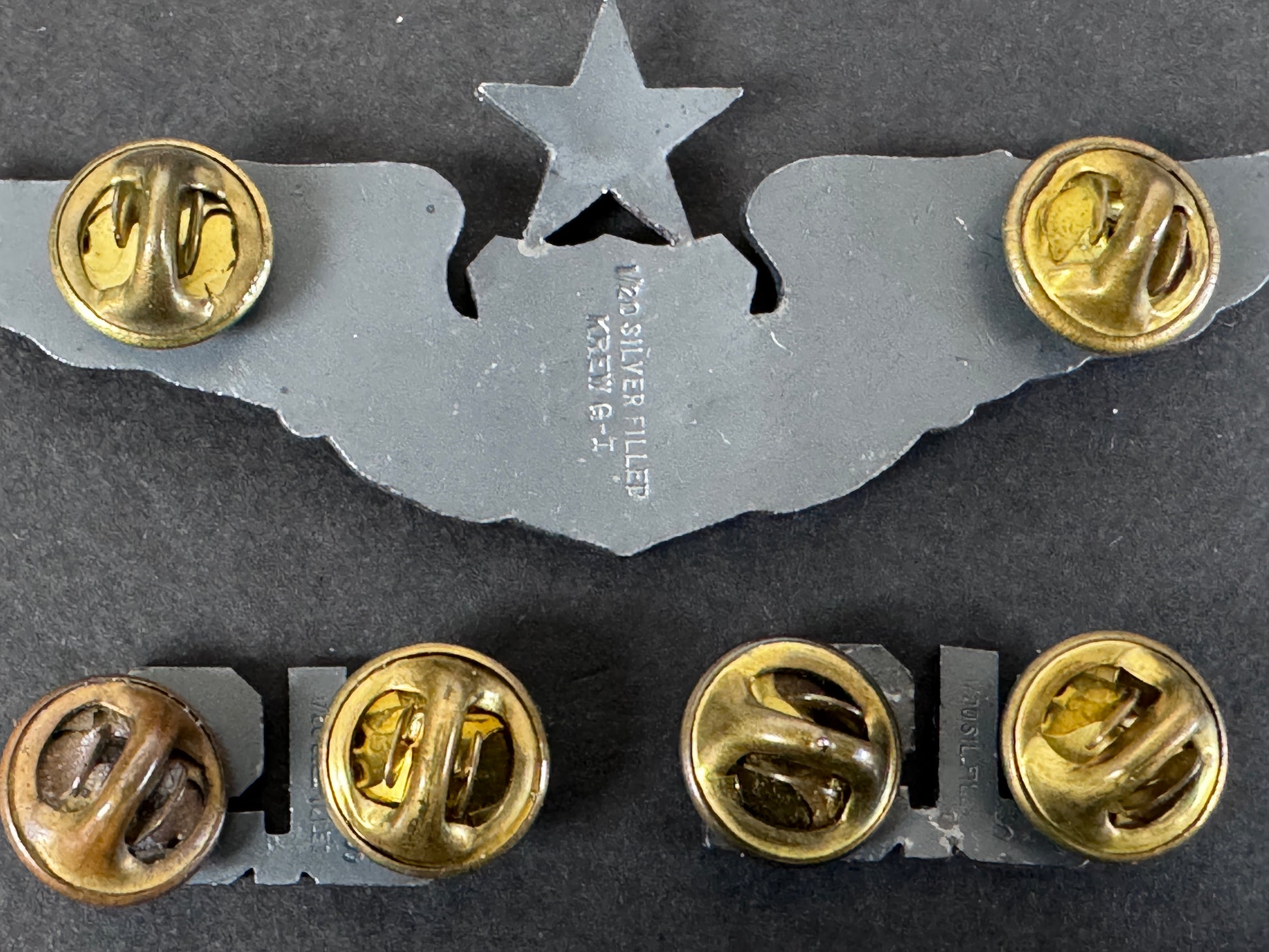 Con distintivo da pilota senior. Lunghezza 77 mm, lega placcata in argento, marchio del produttore KREW G-1.