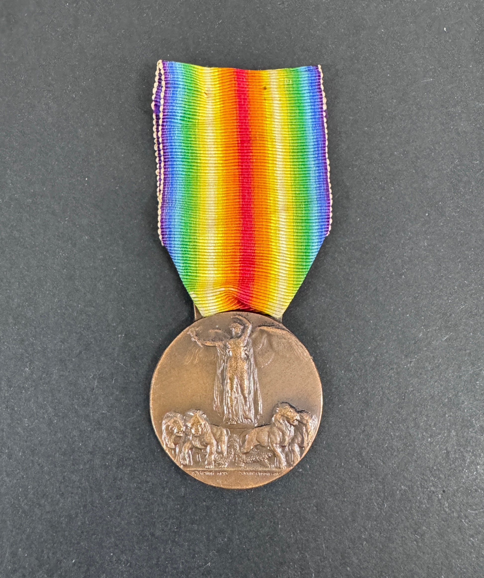 35 mm. Bronze construction. Original length of ribbon. Maker mark 'ORSOLINI MOD' 'S. JOHNSON MILANO.' Good age patina. Very light contact marks. Very good condition.