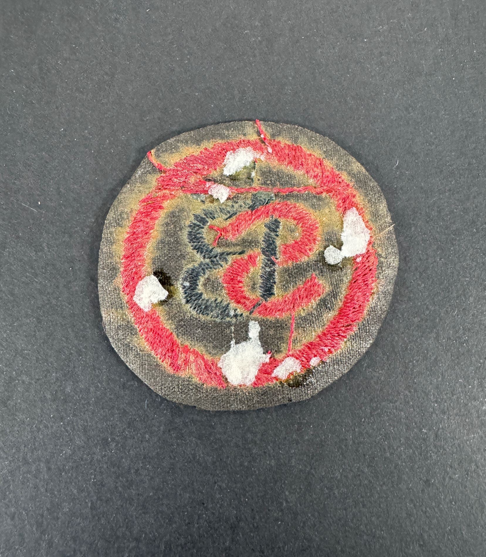 Approx. 60 mm diameter. Woven construction. Seems to be unissued. Is stiff as the reverse has been lacquered or similar. Very goof condition. This type of badge worn in service for a short period only.
