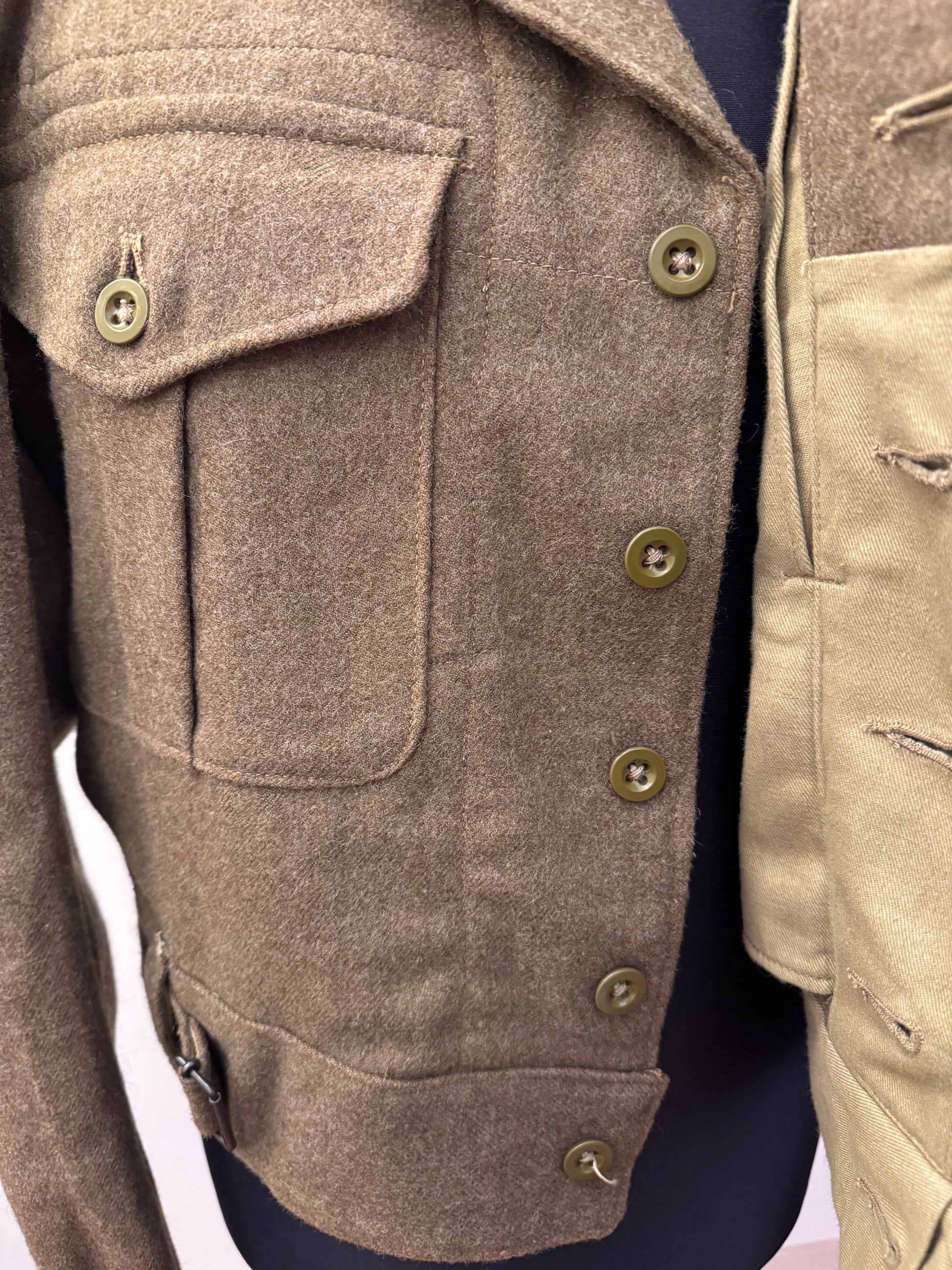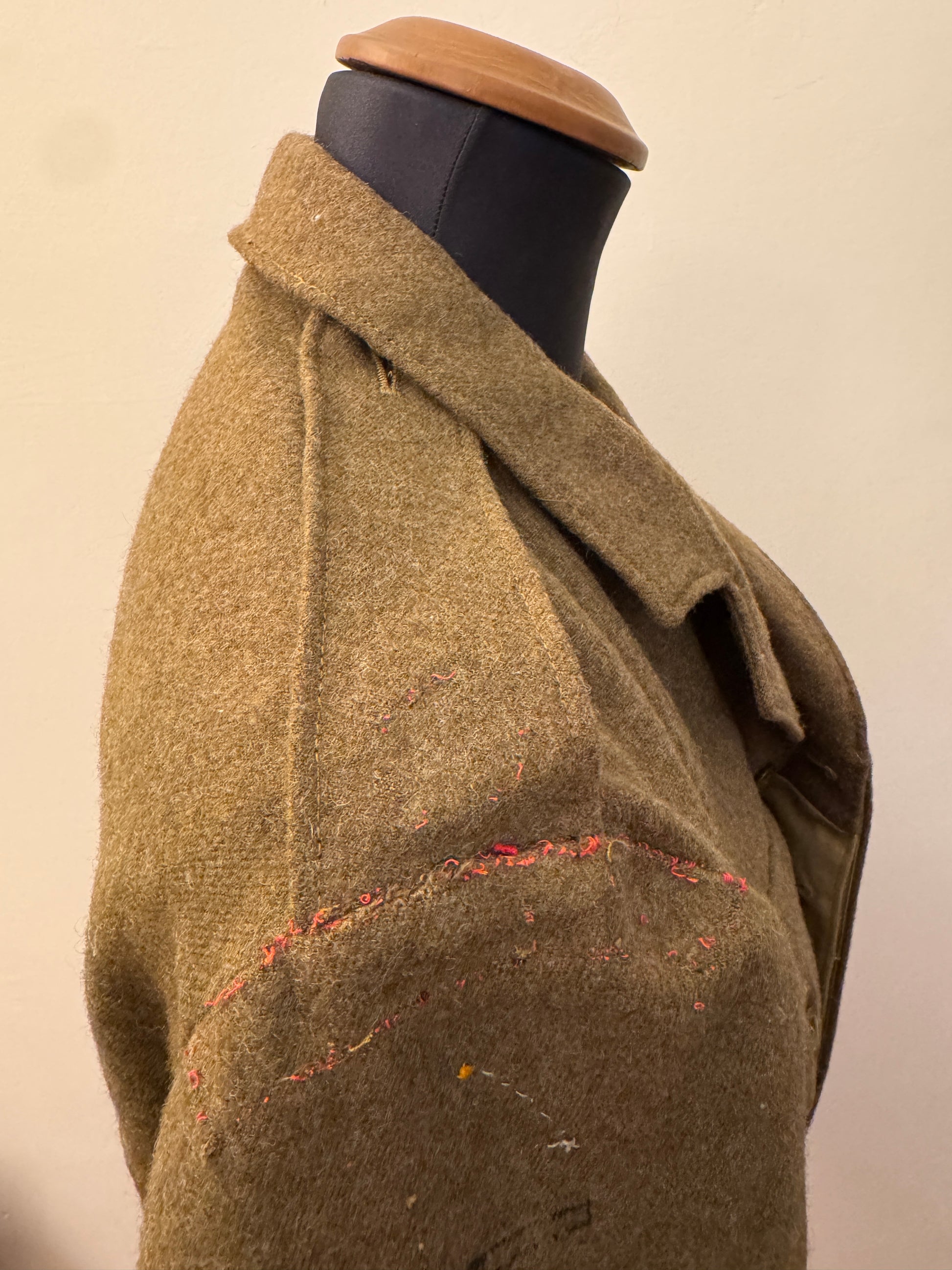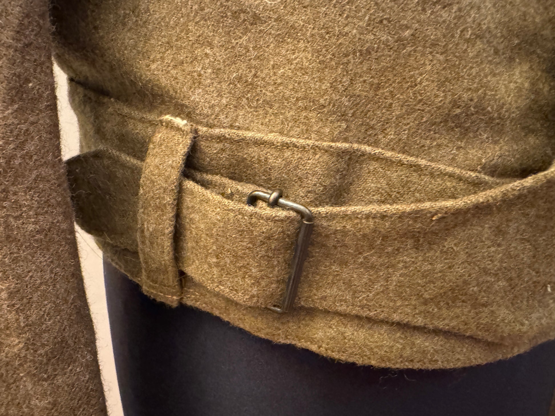 Khaki wool construction. Complete with all buttons and buckles. Clean and damage free. Ready for wear, display, add your own insignia.