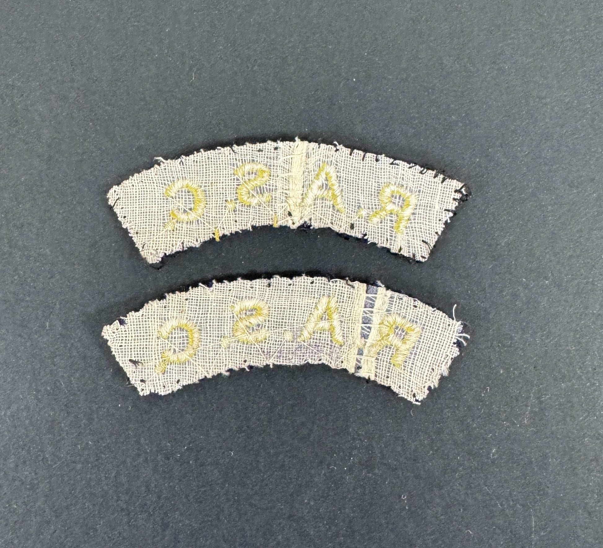 An original pair of battledress shoulder titles of the Royal Army Service Corps (R.A.S.C.).