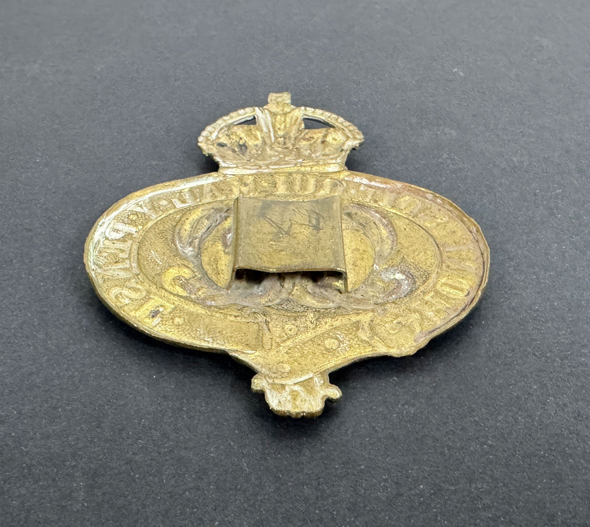 A World War One period Grenadier Guards valise badge. Metal insignia worn on the valise backpack.