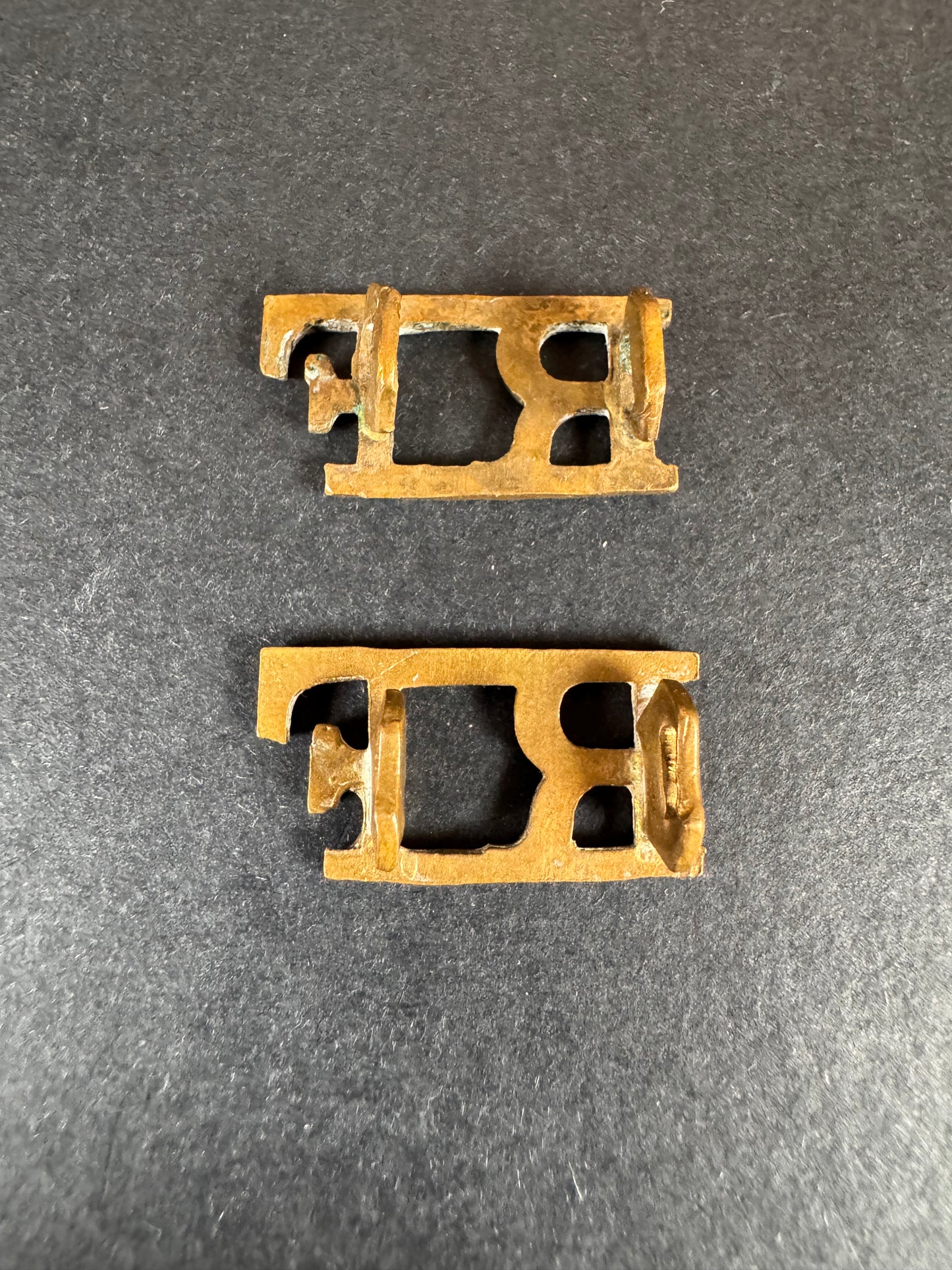 An original pair of uniform shoulder titles of The Royal Fusiliers (R.F), City of London Regiment. In brass with mounts, fine condition.