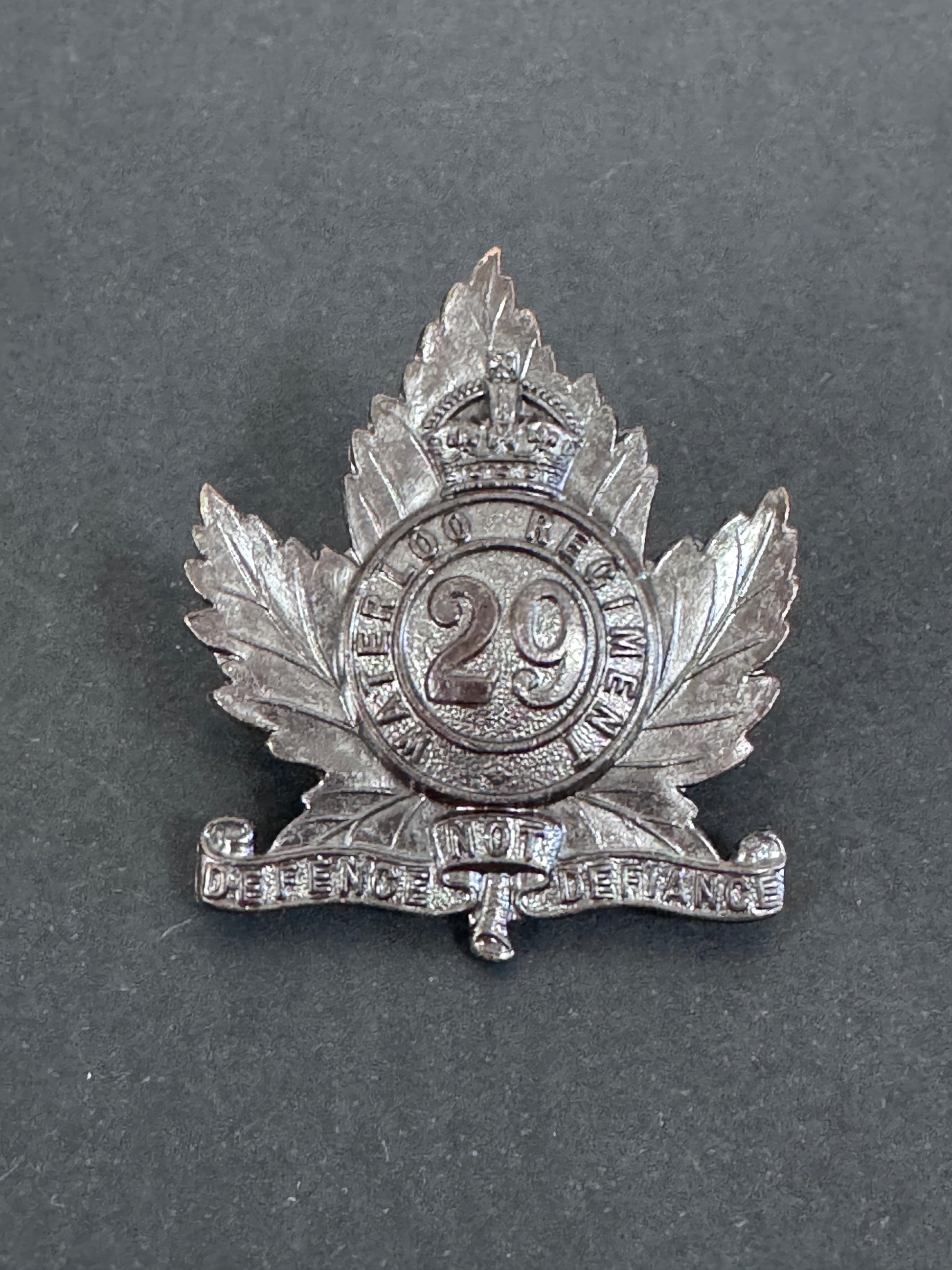 WW1 Canadian 29th Waterloo Regiment Cap Badge 1900-1915