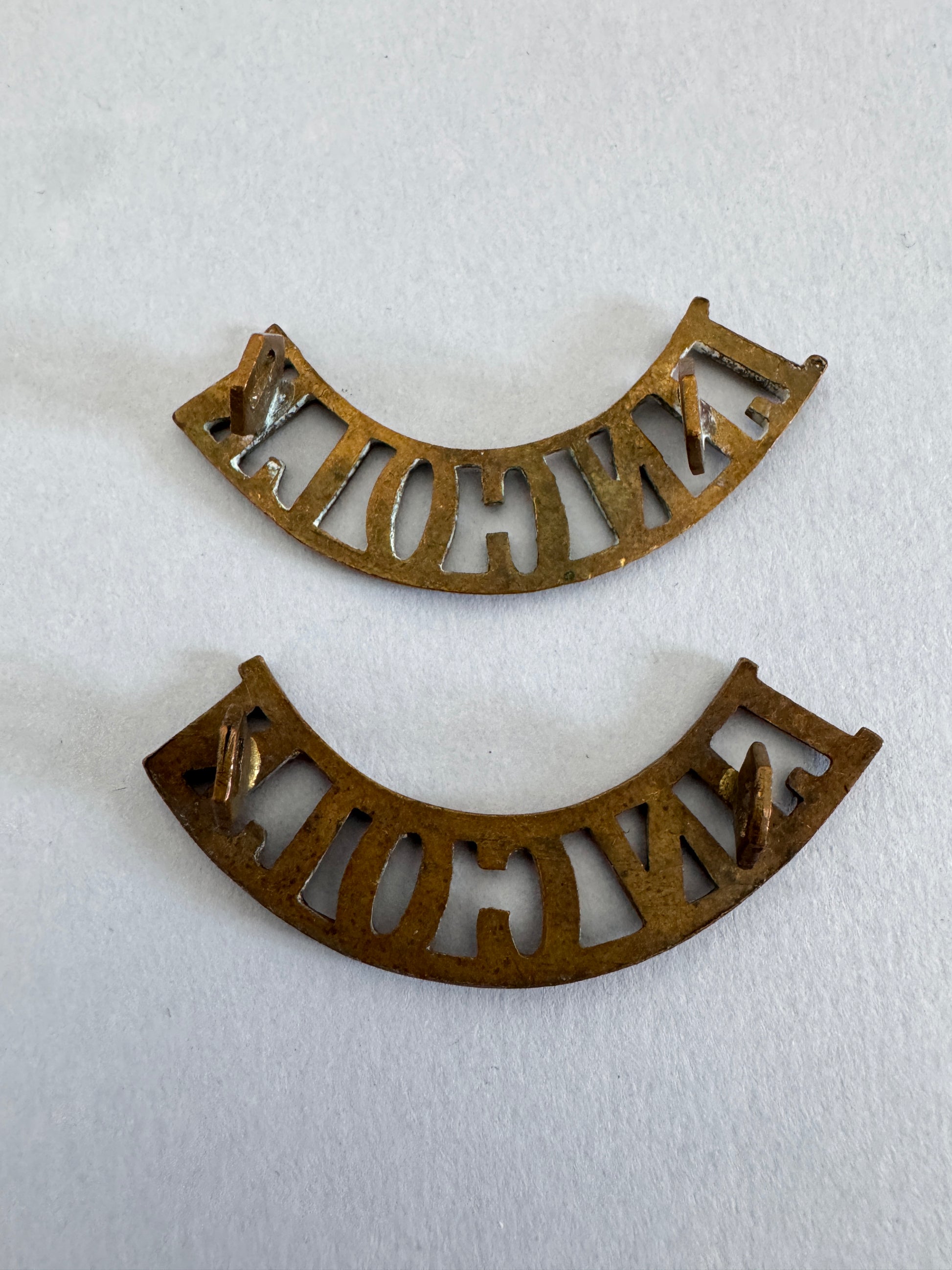 An original pair of shoulder titles of The Lincolnshire Regiment. Worn from 1902 until the end of World War Two.