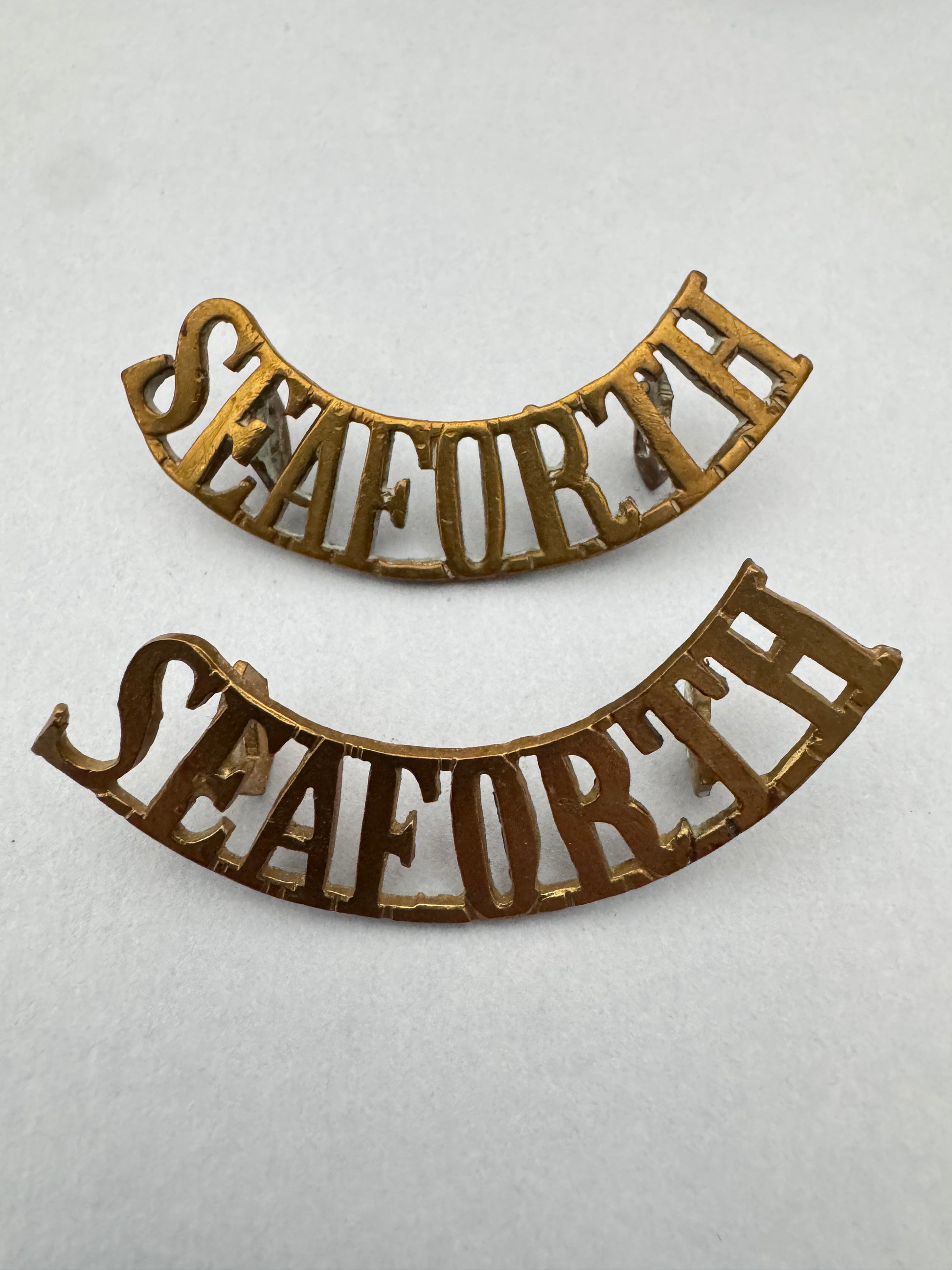 An original pair of shoulder titles of the Seaforth Highlanders. Worn during both World War One and Two.