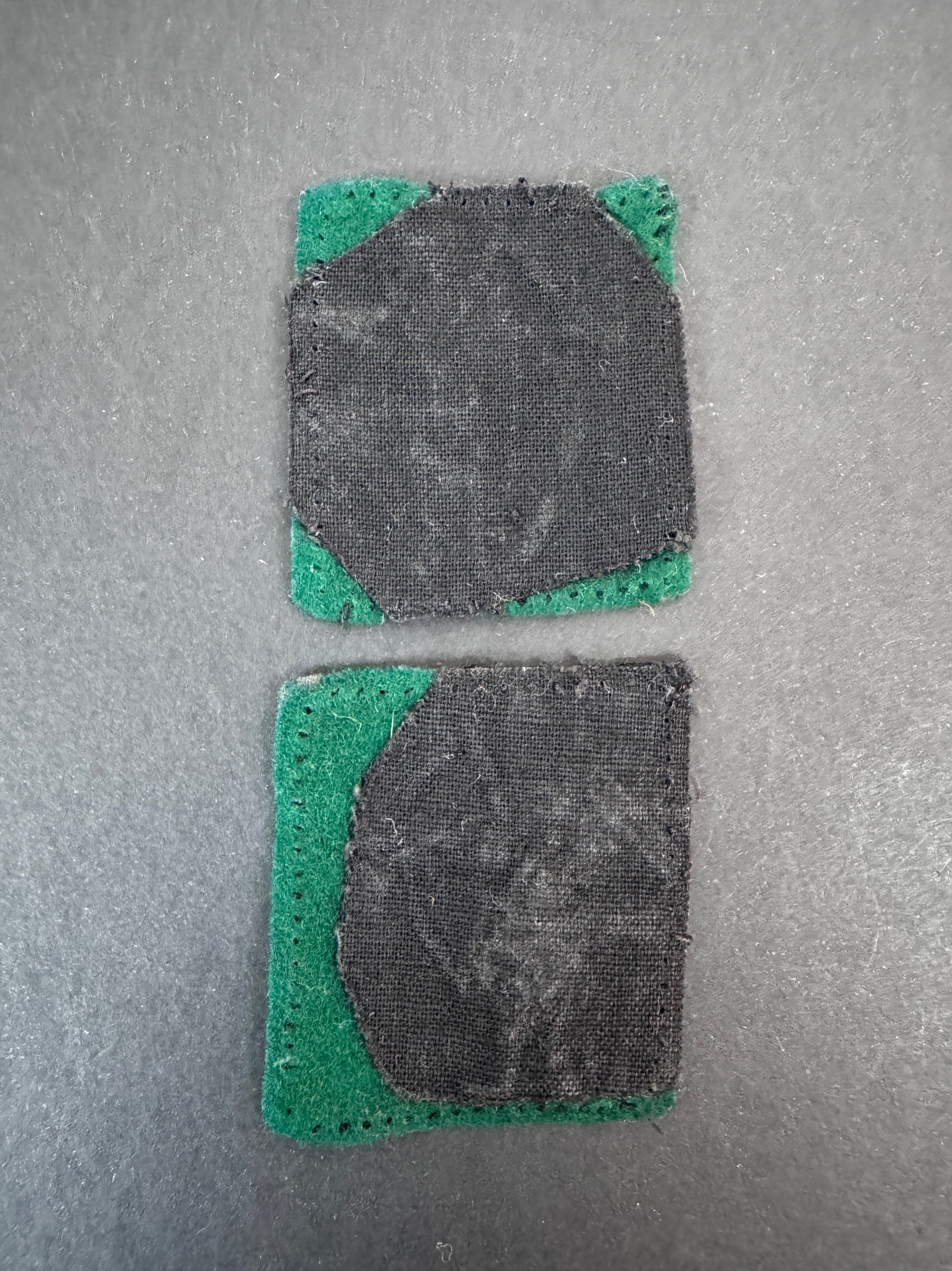 Machine woven cotton onto green wool backing. A uniform removed matching pair. Approx. 50 x 50 mm. Very good condition.