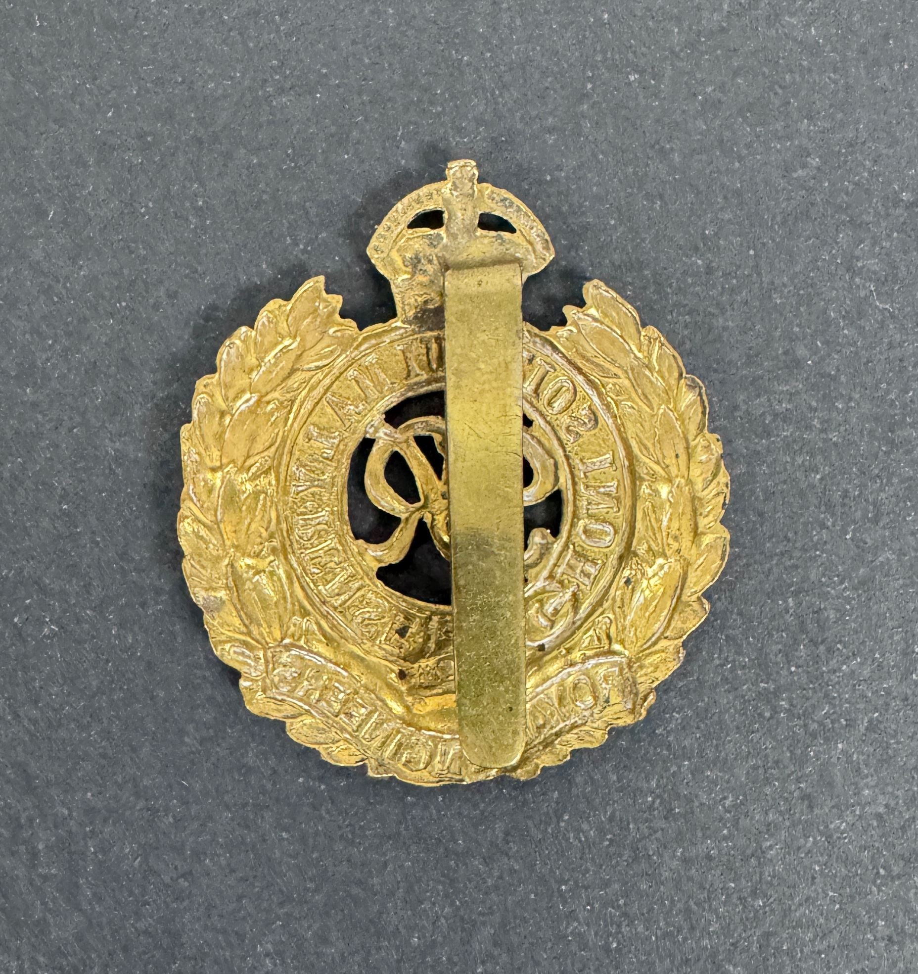 41 x 47 mm. Gilding metal construction. Slider mount affixed to the reverse. Light service wear, generally very good condition.