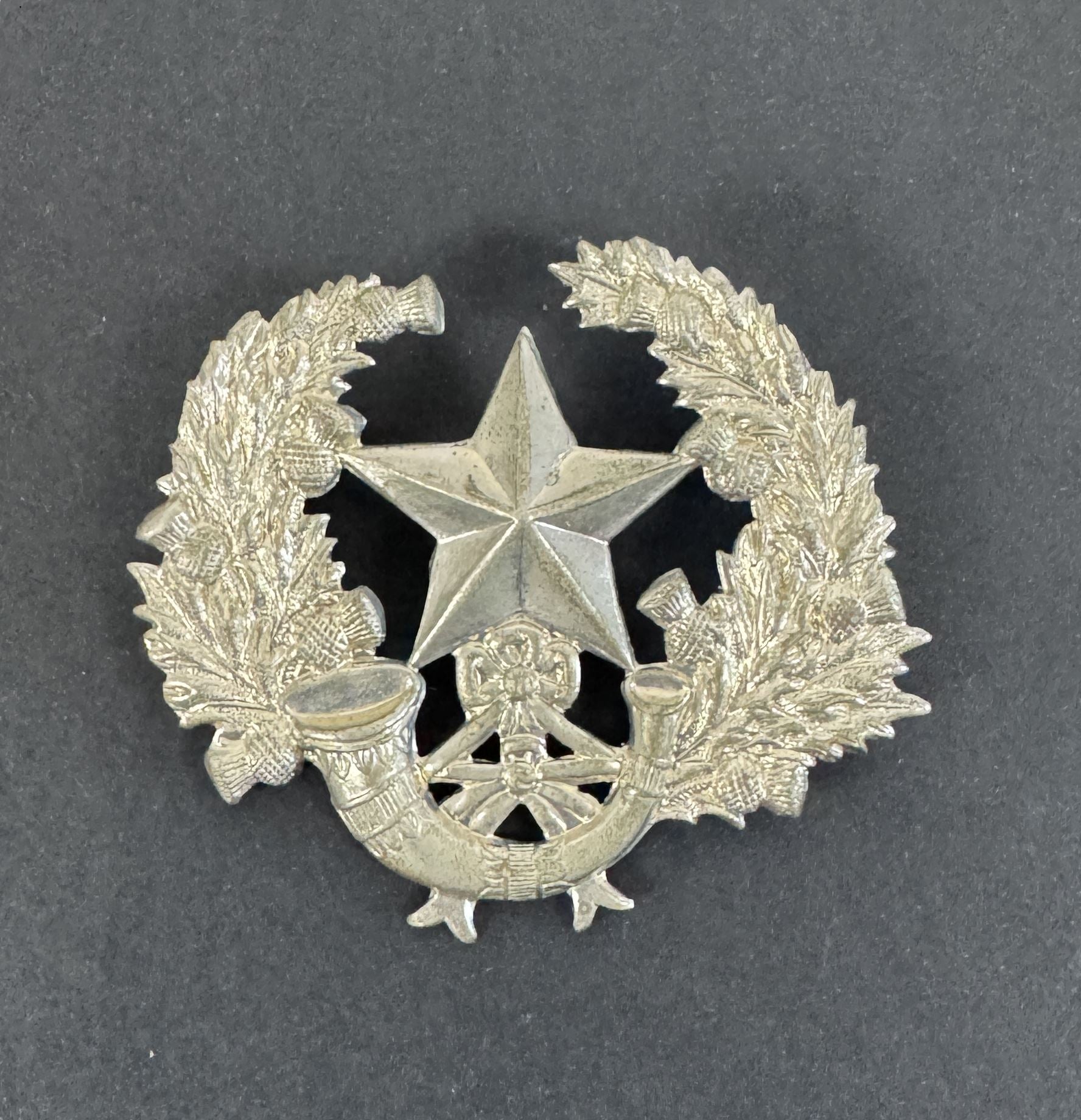An original Glengarry head dress badge of the Scottish Rifles (Cameronians) regiment.