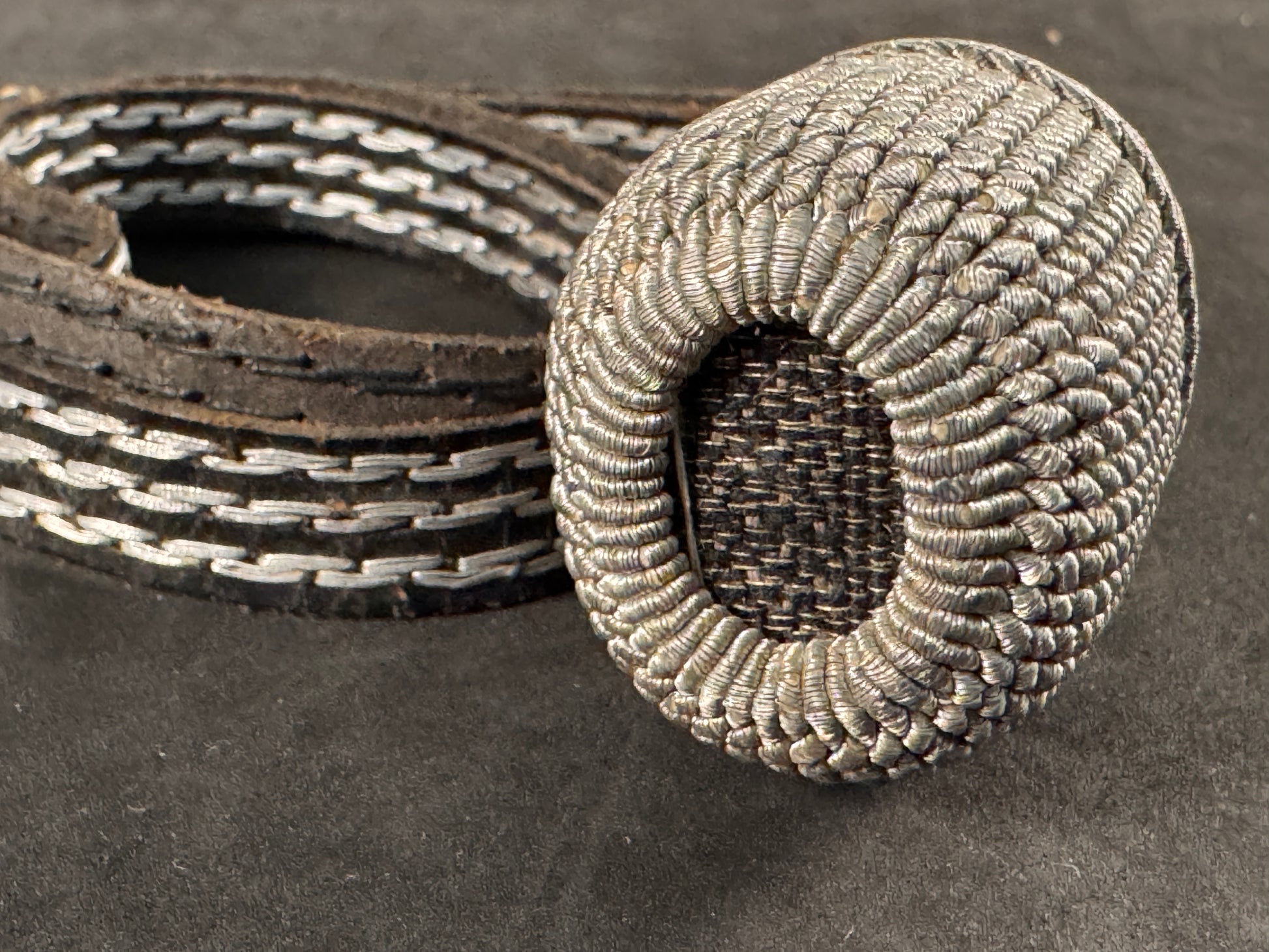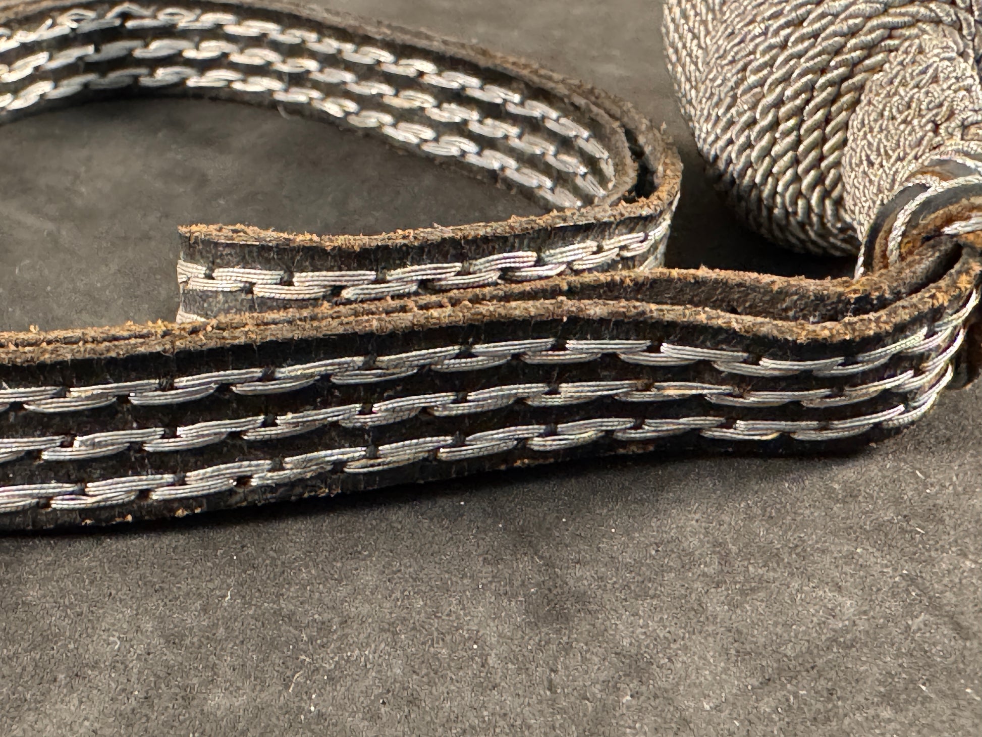 42 cm length, leather strap with silver wire threaded decoration denoting rank and branch of service. Silver bullion wire knot over metal frame. Light age tones and marks, generally very good condition.